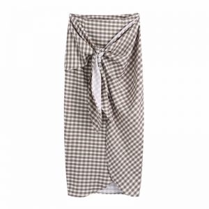 Hot Sale Women Lace Up Bow Plaid Midi Wrap Skirt Casual Female High Waist Loose Clothes P2303
