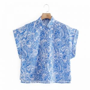 Summer Women Vintage Paisley Printing Short Shirt Female Puff Sleeve Blouse Casual Lady Slim Tops Blusas S9037