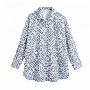 Casual Women Geometric Printing Loose Shirt Female Nine Quarter Sleeve Blouse Hot Sale Lady Tops Blusas S9226
